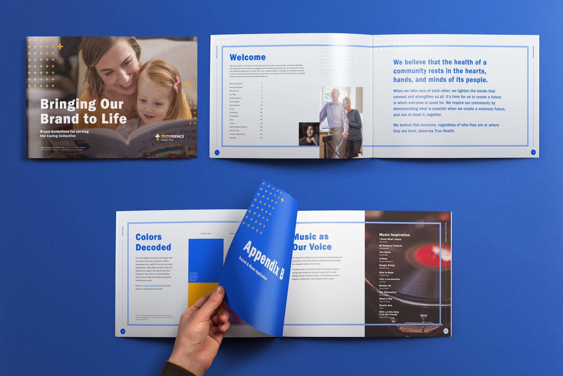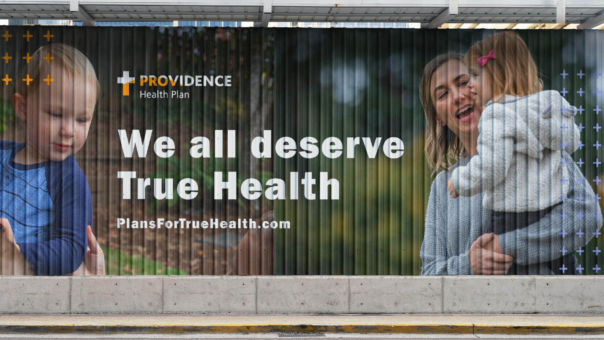 Providence Health needed their mission and values to actually show up in the way their brand looked and sounded. Over six months, we developed a refreshed identity, voice and tone, and the guidelines to back it all up. The work was anchored by a brand anthem — 'We All Deserve True Health' — and brought to life through a TV ad series built around real member and partner stories.